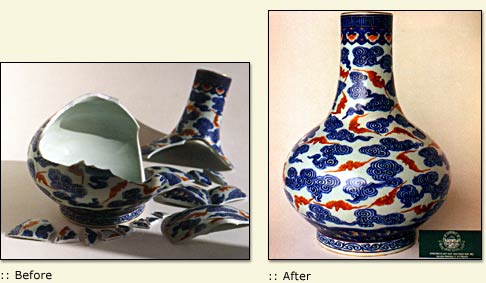 19th Century Chinese bat vase in numerous pieces